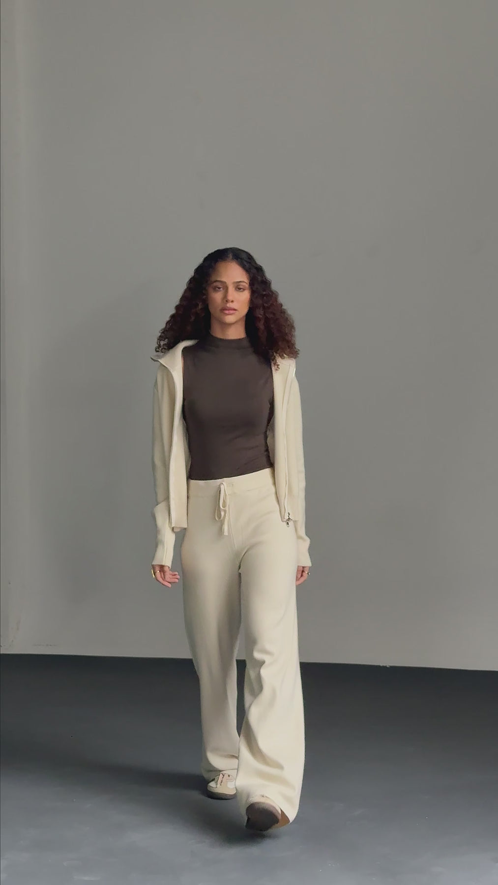 The Ivory Set is designed for women who want comfort without softness, structure without stiffness. The zip-front top allows you to control the mood, worn open, half-zipped, or fully closed. The trousers sit comfortably with an elasticated waistband and fall into a relaxed, elongated line.