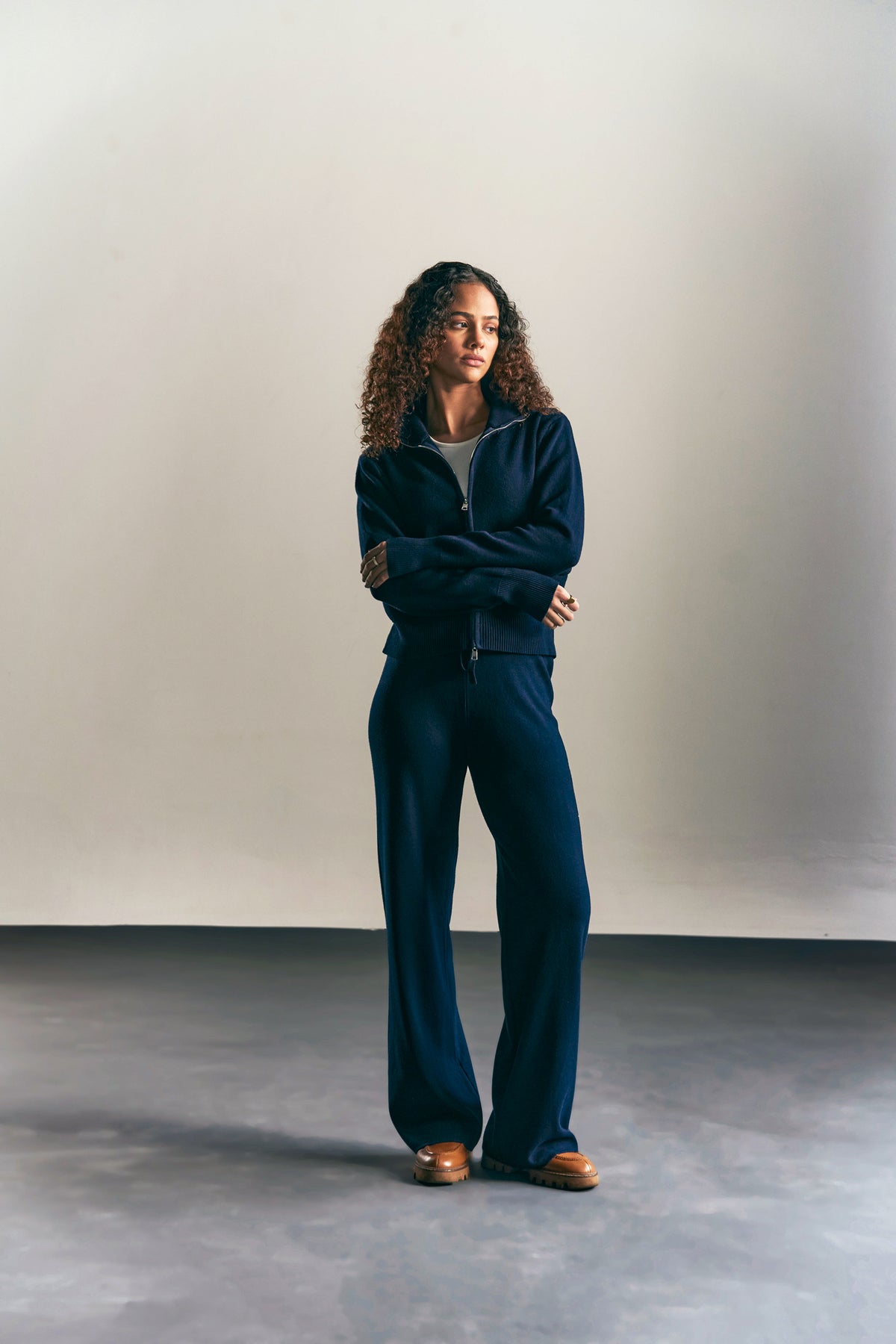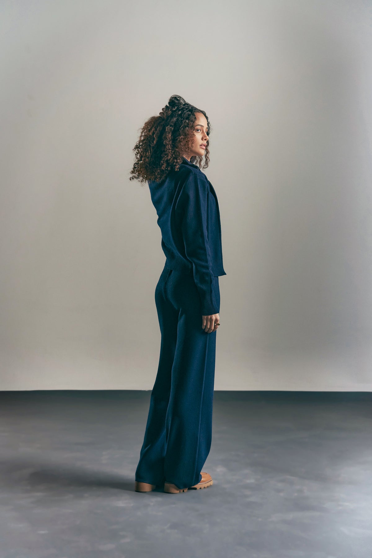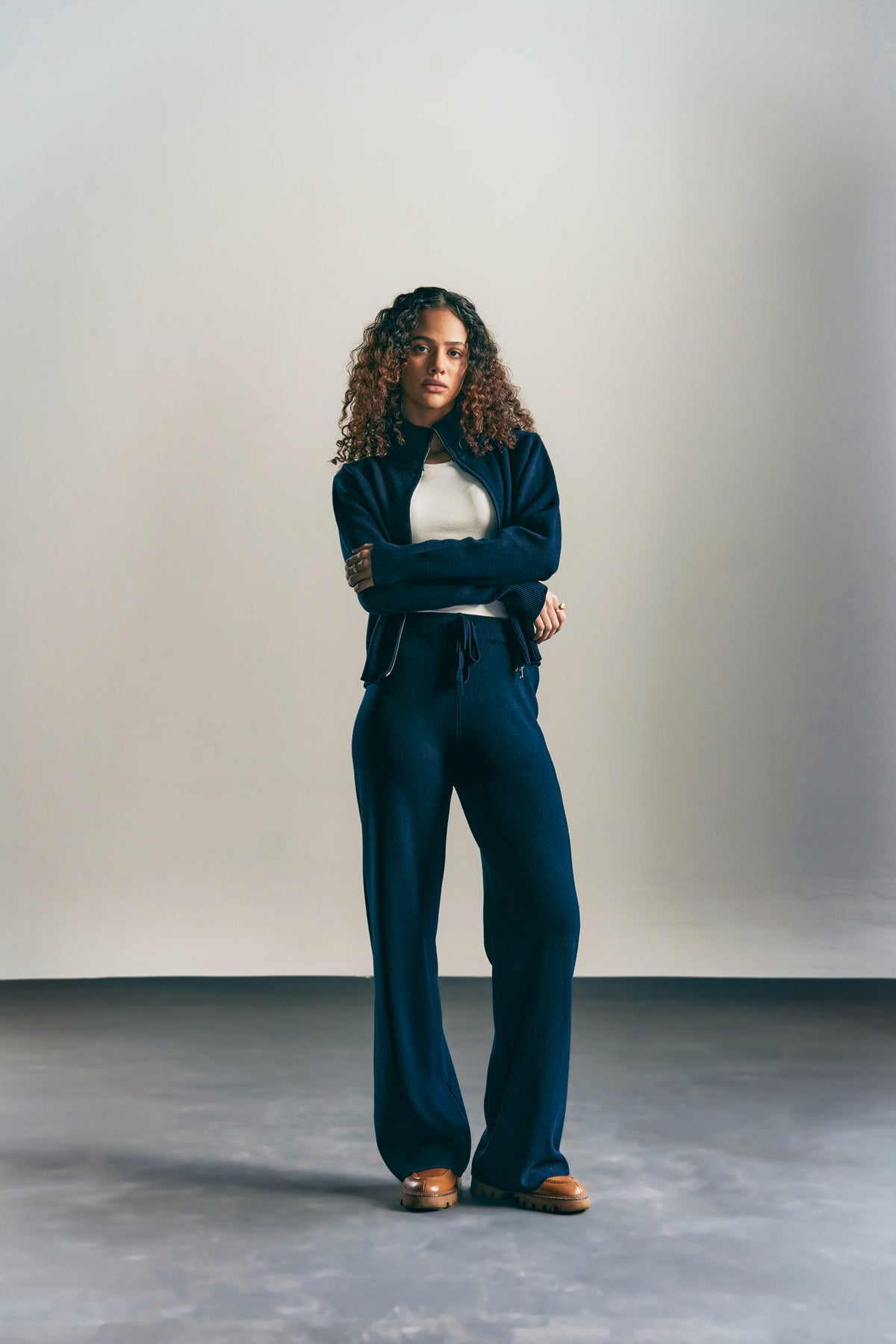 The Midnight Set brings a sharper edge to ease-driven dressing. The zip-front top adds structure, while the relaxed trousers balance the look with comfort. Designed for long days, travel, and everything in between , this is a set that works without effort.