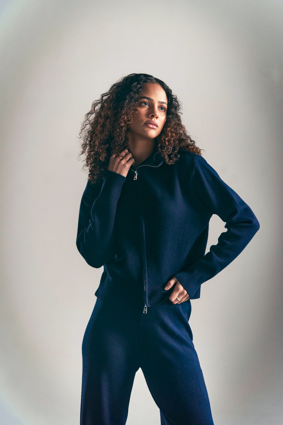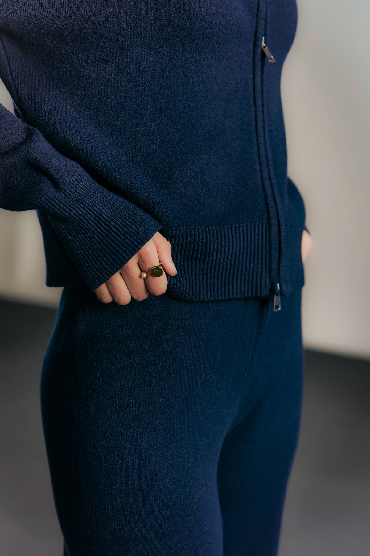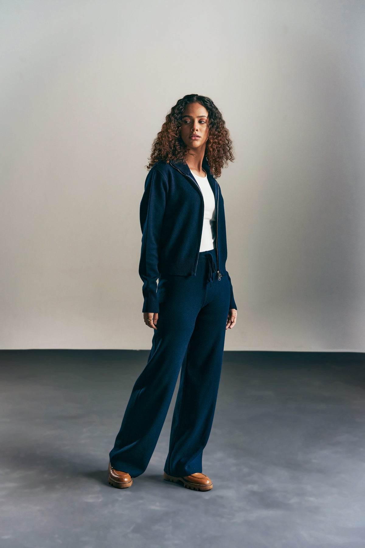 The Midnight Set brings a sharper edge to ease-driven dressing. The zip-front top adds structure, while the relaxed trousers balance the look with comfort. Designed for long days, travel, and everything in between , this is a set that works without effort.
